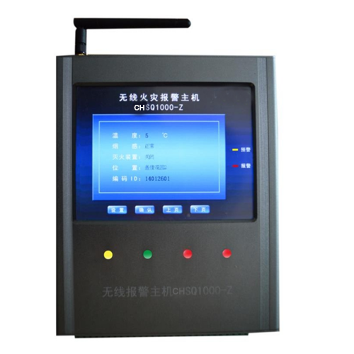 無線報(bào)警主機(jī)實(shí)時(shí)接收?qǐng)?bào)警控制器在線監(jiān)測(cè)數(shù)據(jù)、顯示溫度和煙感狀態(tài),當(dāng)被監(jiān)測(cè)的環(huán)境溫度或煙感異常時(shí),無線報(bào)警主機(jī)會(huì)即刻啟動(dòng)內(nèi)置報(bào)警器高音報(bào)警并通過無線通訊模塊給預(yù)先設(shè)定好的5個(gè)手機(jī)發(fā)送短信報(bào)警,并可通過RS232 或485或GSM MODEM傳輸?shù)暮笈_(tái)主機(jī)或主控室。